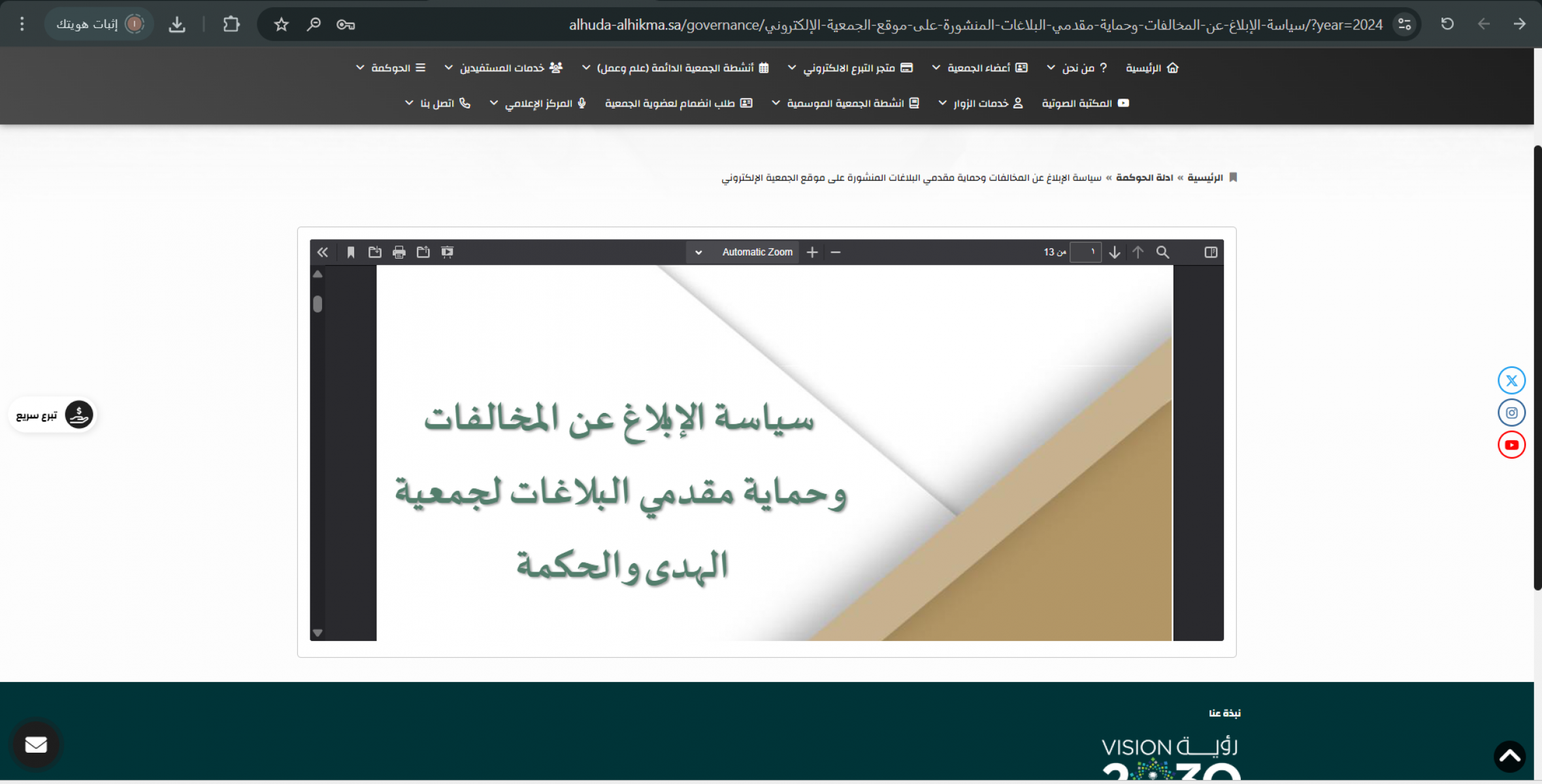 سياسة الإبلاغ عن المخالفات وحماية مقدمي البلاغات المنشورة على موقع الجمعية الإلكتروني